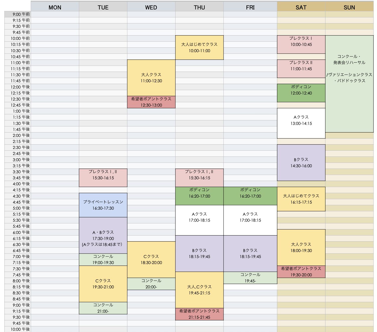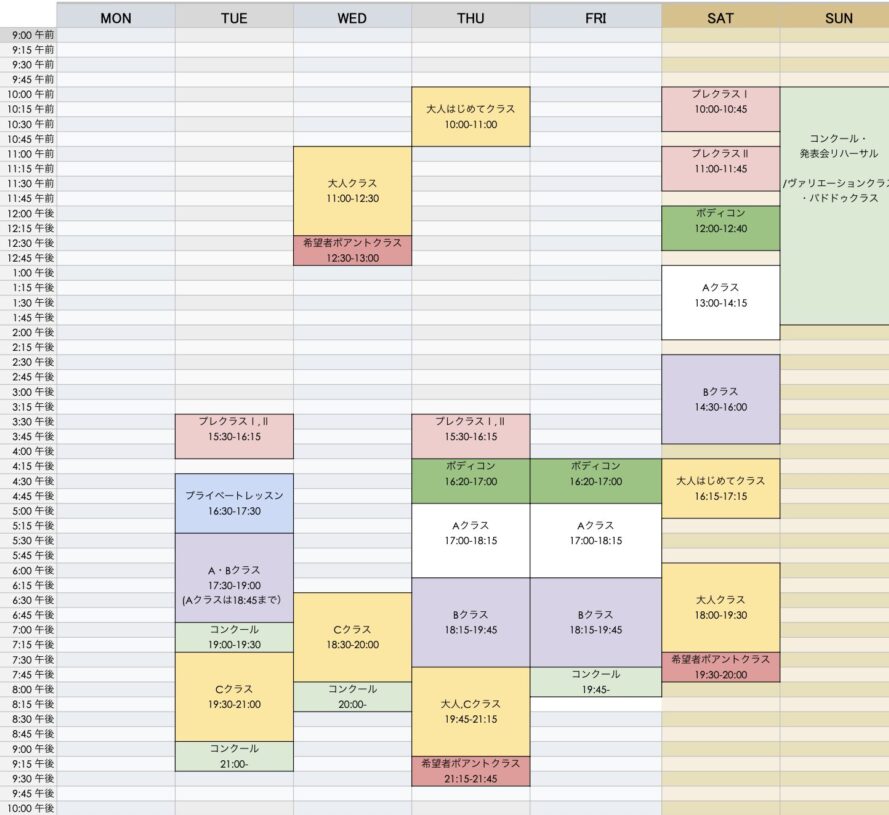 クラス | 週1回 | 週2回 | 週3回以上 |